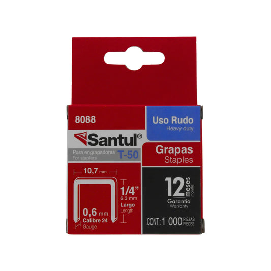 Grapa para engrapadora T-50 1/4" (6 mm) 1000 piezas Santul 8088
