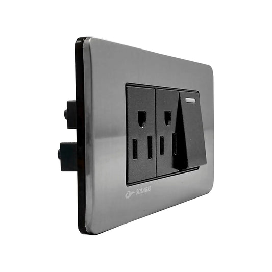Placa 1 apagador/2 contacto negro cromo Solaris AL612NG