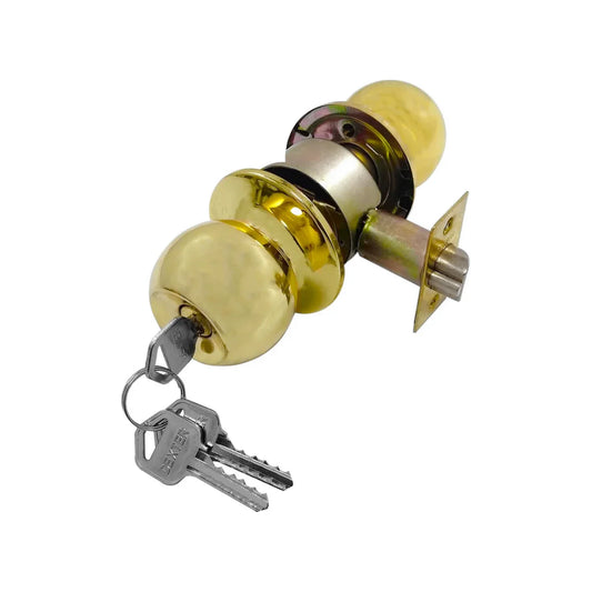 Cerradura/Chapa esfera para recámara dorada Ferky FLCE-LB