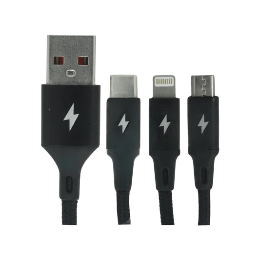 Cable de carga múltiple V8/Tipo C/IPHONE negro Super átomo SA2006A