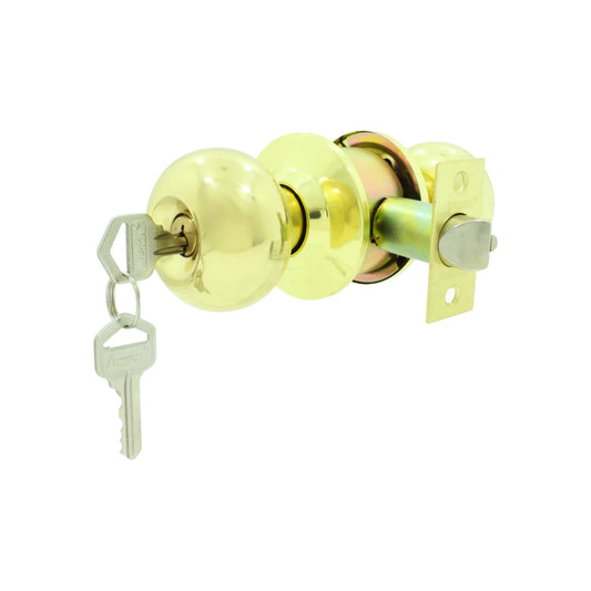 Cerradura/Chapa esfera para recámara dorada Ferky FLCE-LB