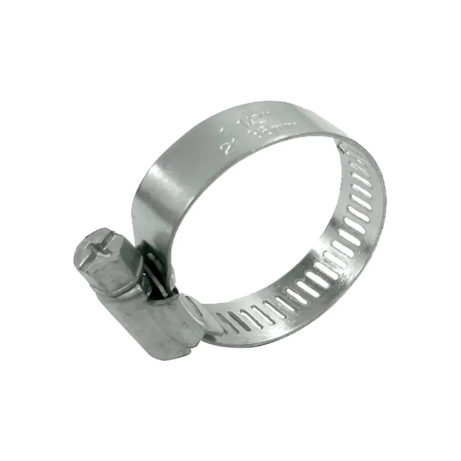 Abrazadera sin fin ajustable y reutilizable; se instala rápido y garantiza un cierre hermético en mangueras o tuberías, con acero resistente a la corrosión.