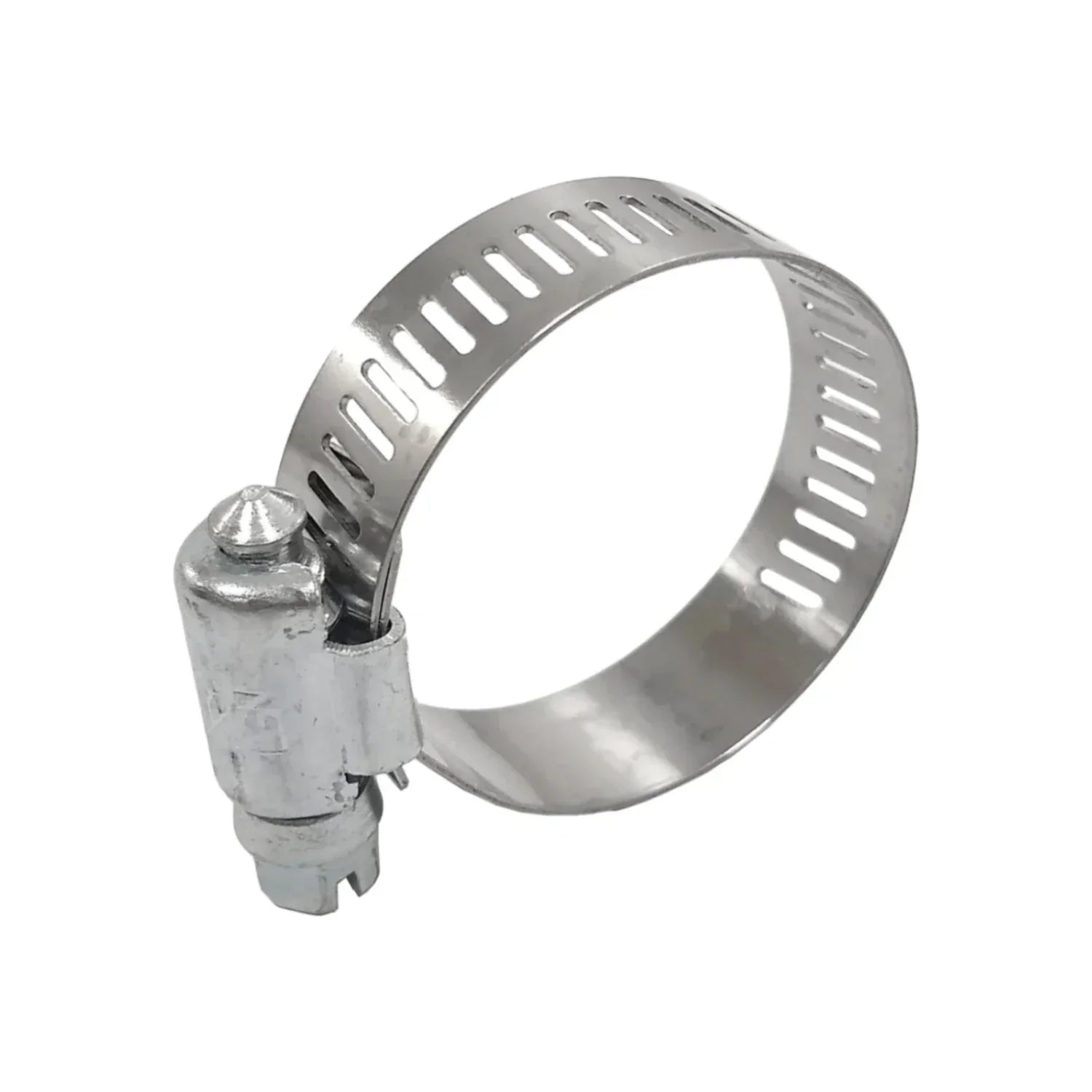 Abrazadera sin fin ajustable y reutilizable; se instala rápido y garantiza un cierre hermético en mangueras o tuberías, con acero resistente a la corrosión.