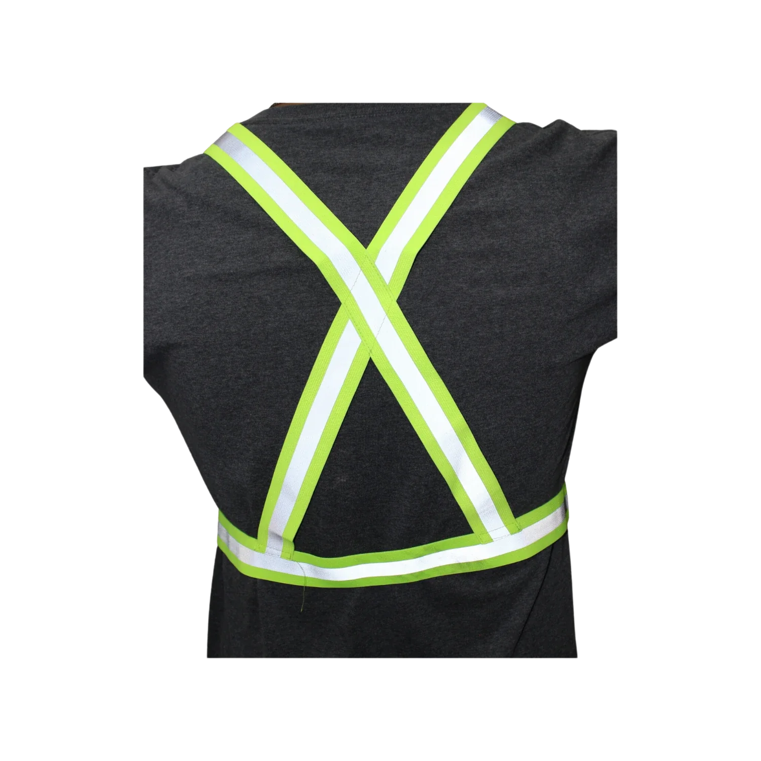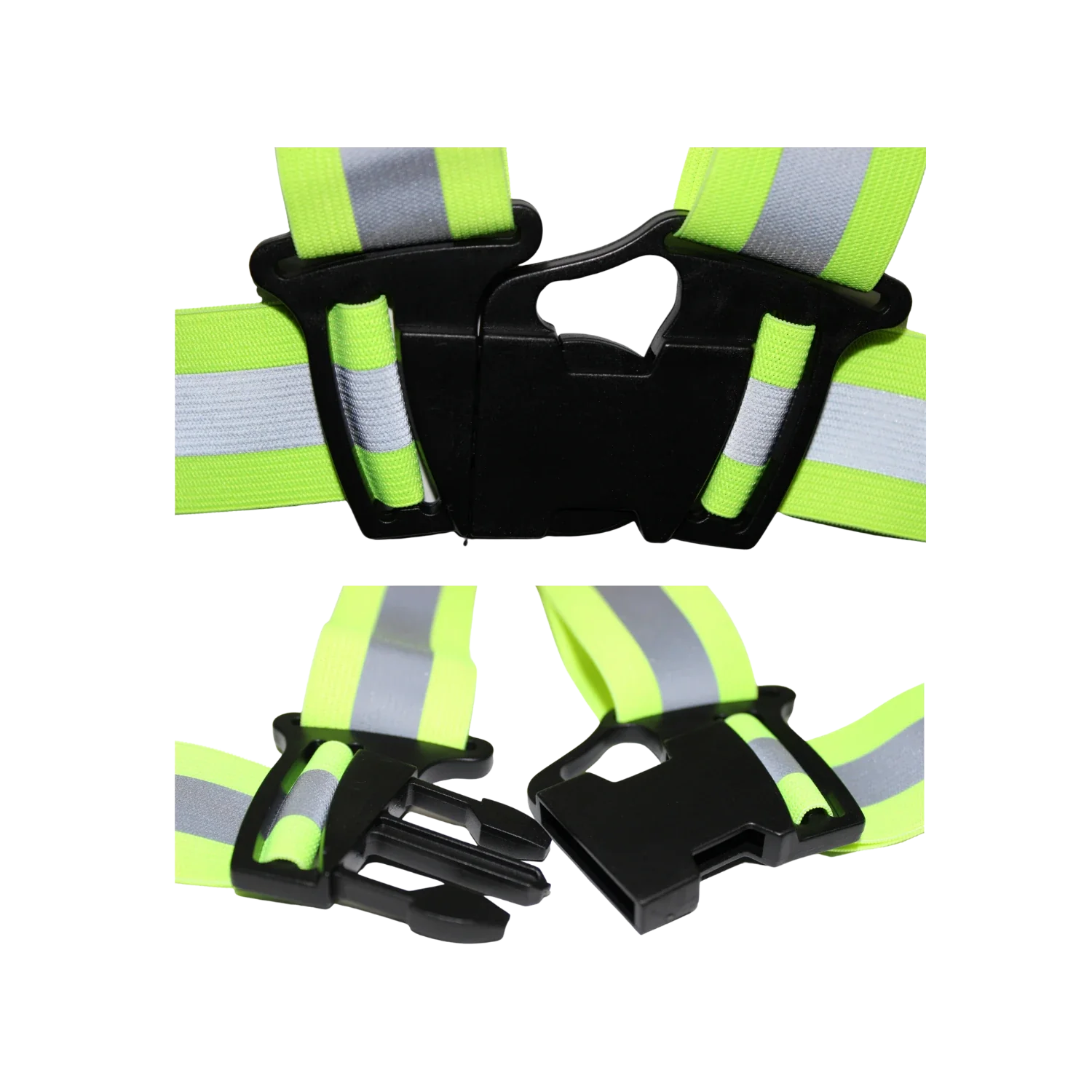 Arnés elástico con tirantes de hombro ajustables, cómodo y seguro para tareas de construcción o trabajo en altura. Proporciona un ajuste firme y libertad de movimiento.