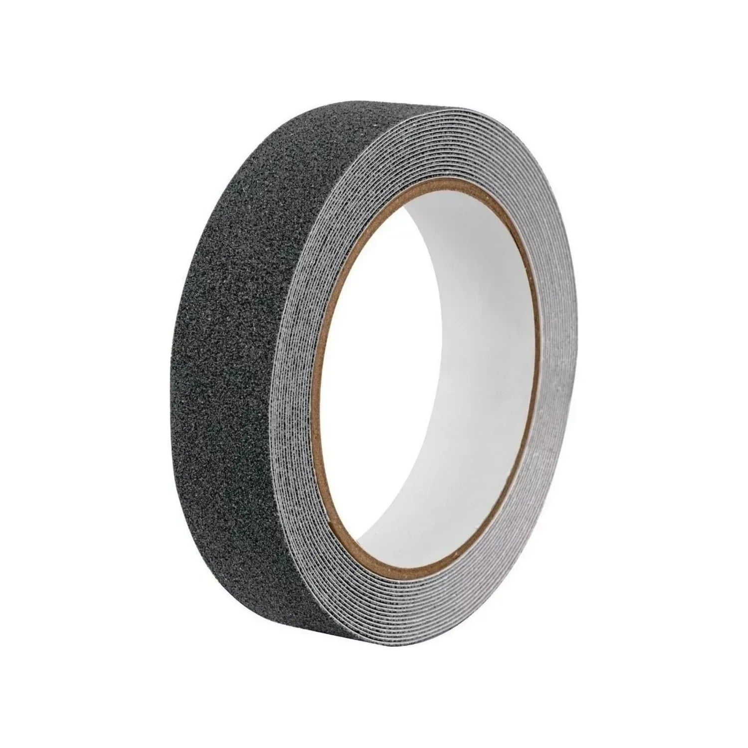Cinta adhesiva antiderrapante en color negro, diseñada para mejorar la seguridad en áreas propensas a resbalones. Su superficie rugosa con recubrimiento de óxido de aluminio proporciona excelente tracción, mientras que el adhesivo acrílico de alto desempeño garantiza una fijación duradera sobre superficies lisas. Ideal para interiores y exteriores en zonas de alto tránsito.