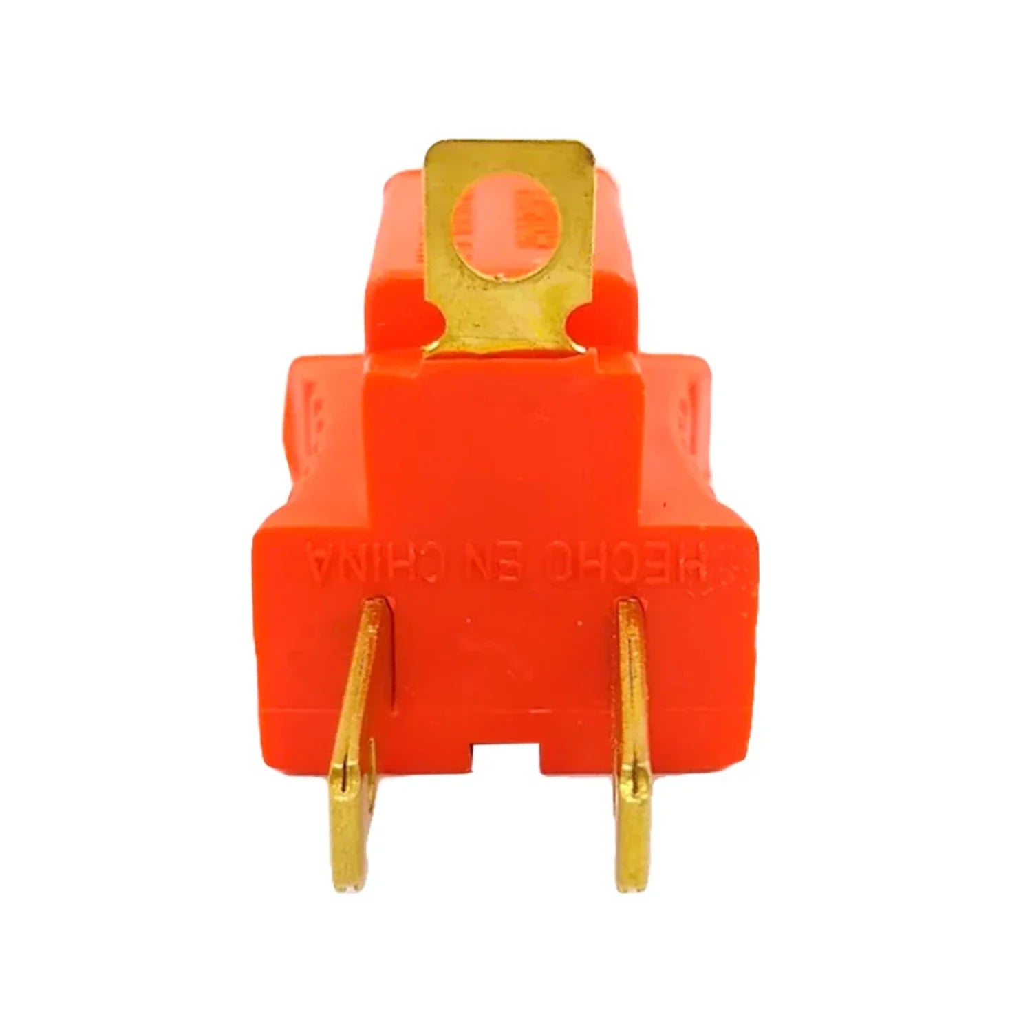 Clavija convertidora Igoto modelo CL2PC-AM13 en color naranja, diseñada para adaptar dispositivos con clavija polarizada con tierra a contactos estándar sin tierra. Su diseño compacto y resistente permite una conexión segura en espacios domésticos o comerciales. Ideal para equipos eléctricos que requieren compatibilidad con tomas convencionales sin modificar el voltaje.