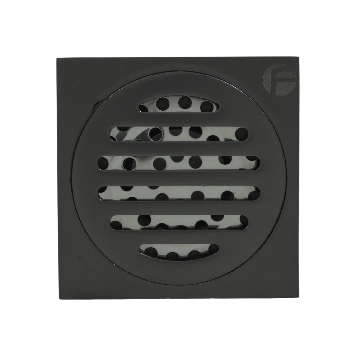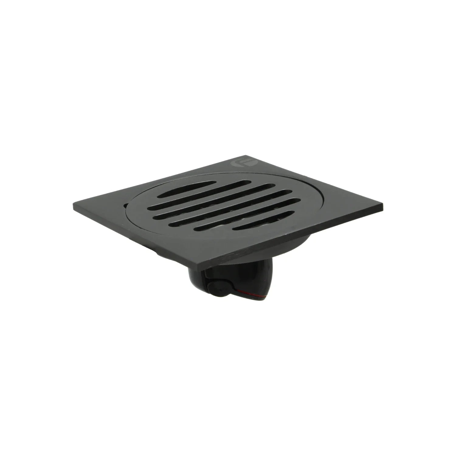 Coladera cuadrada Fidic A503 de 6 × 6 cm con acabado gris, diseñada con válvula antiolores para evitar el retorno de gases, insectos y humedad desde el drenaje. Su cuerpo de acero resistente. Cuenta con dos rejillas, la primera impide el paso a impurezas de gran volumen y la segunda para residuos más pequeños.