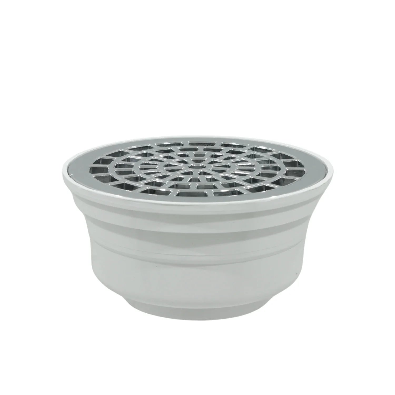 Coladera universal Metalflux 11018 con rejilla cromada redonda, diseñada para drenaje eficiente en baños, cocinas, patios y áreas de servicio. Con cuerpo de polipropileno resistente y rejilla de acero inoxidable con tornillos de fijación garantiza durabilidad y fácil mantenimiento. Incluye trampa de agua integrada para evitar malos olores e ingreso de insectos.