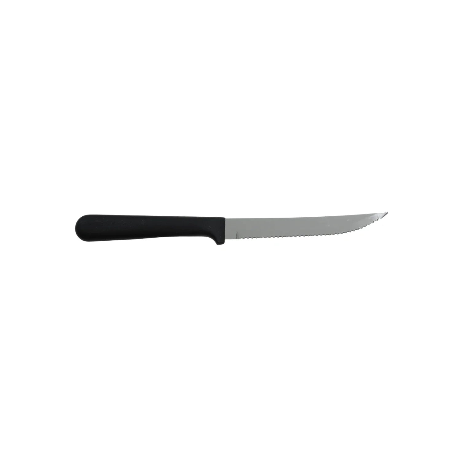 El cuchillo Tramontina de sierra de 5" está diseñado para cortes precisos en carnes y frutas. Su hoja dentada de acero inoxidable con tratamiento térmico y mango de plástico ofrecen durabilidad y control.