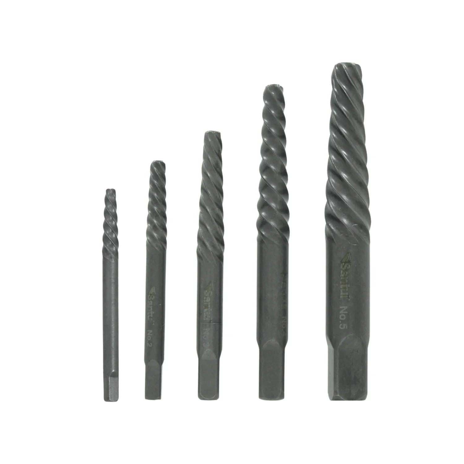 Juego de extractores tipo espiral diseñado para remover tornillos, pernos o tornillería dañada, barrida o rota. Ideal para trabajos de reparación en mecánica, carpintería y mantenimiento general. Compatible con taladros eléctricos o manuales, permite una extracción segura girando en sentido contrario a las agujas del reloj.