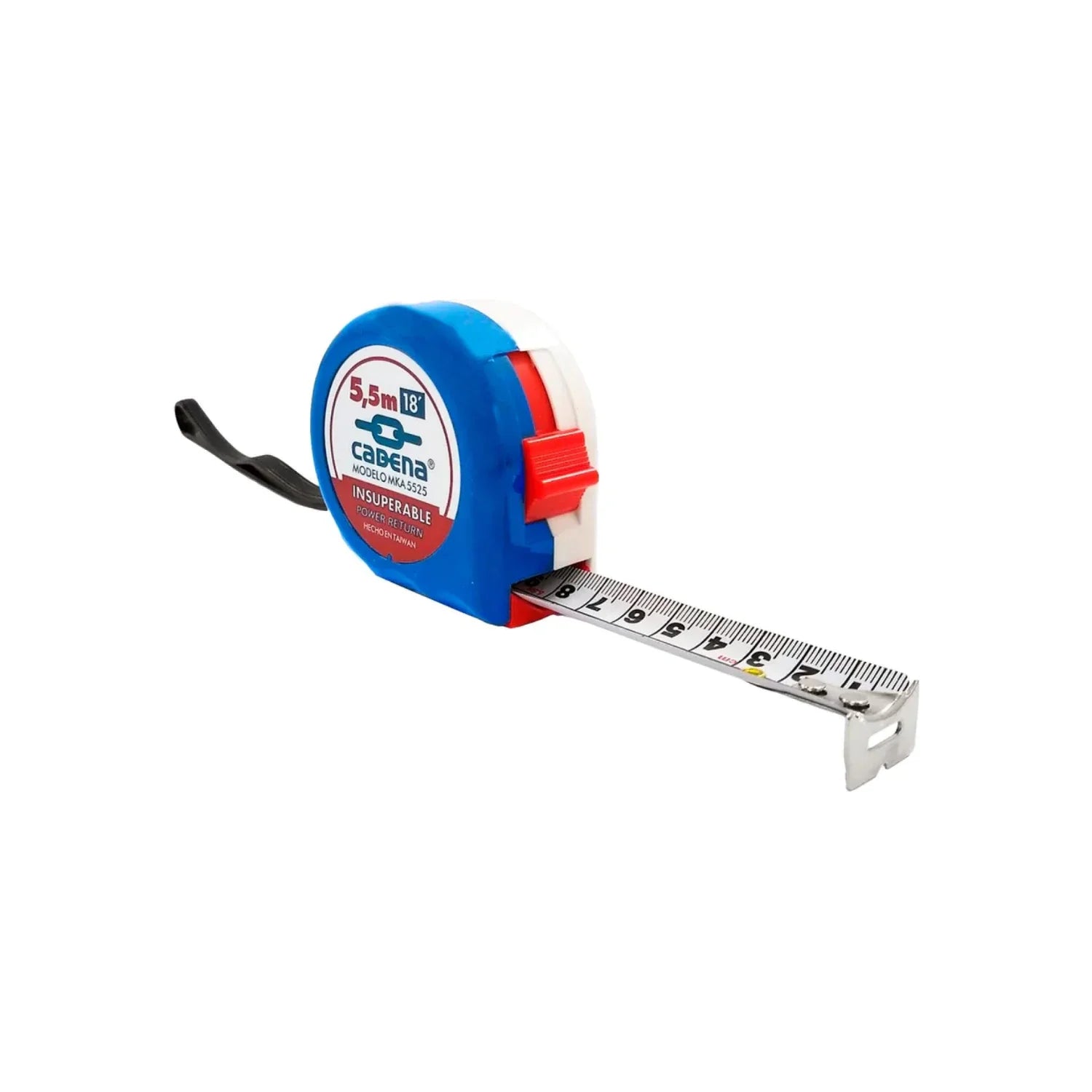 El Flexómetro Cadena MKA 5525 de 5.5 metros es una herramienta de medición profesional con diseño ergonómico y cinta de acero templado. Su cinta de 25 mm de ancho está impresa por ambos lados en centímetros, pulgadas y pies, lo que permite mediciones precisas en distintos sistemas. Incluye botón de tranca, gancho magnético, correa para colgar y clip para cinturón. Ideal para trabajos de construcción, carpintería y bricolaje.