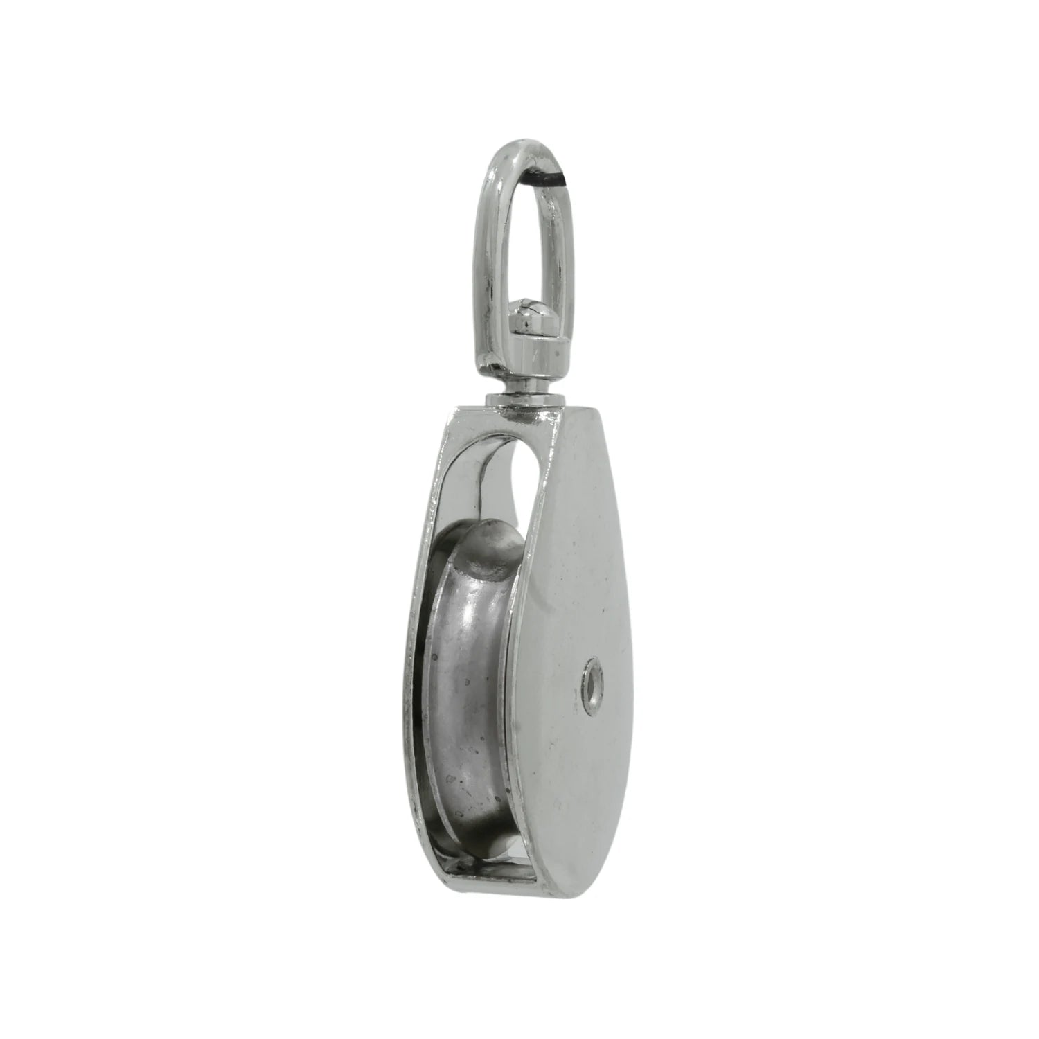 Garrucha para noria 2 pulgadas modelo 7753 marca Santul fabricada en aleación de zinc con acabado niquelado diseñada para levantar cargas ligeras en sistemas de poleas con alta resistencia a la corrosión y estructura duradera