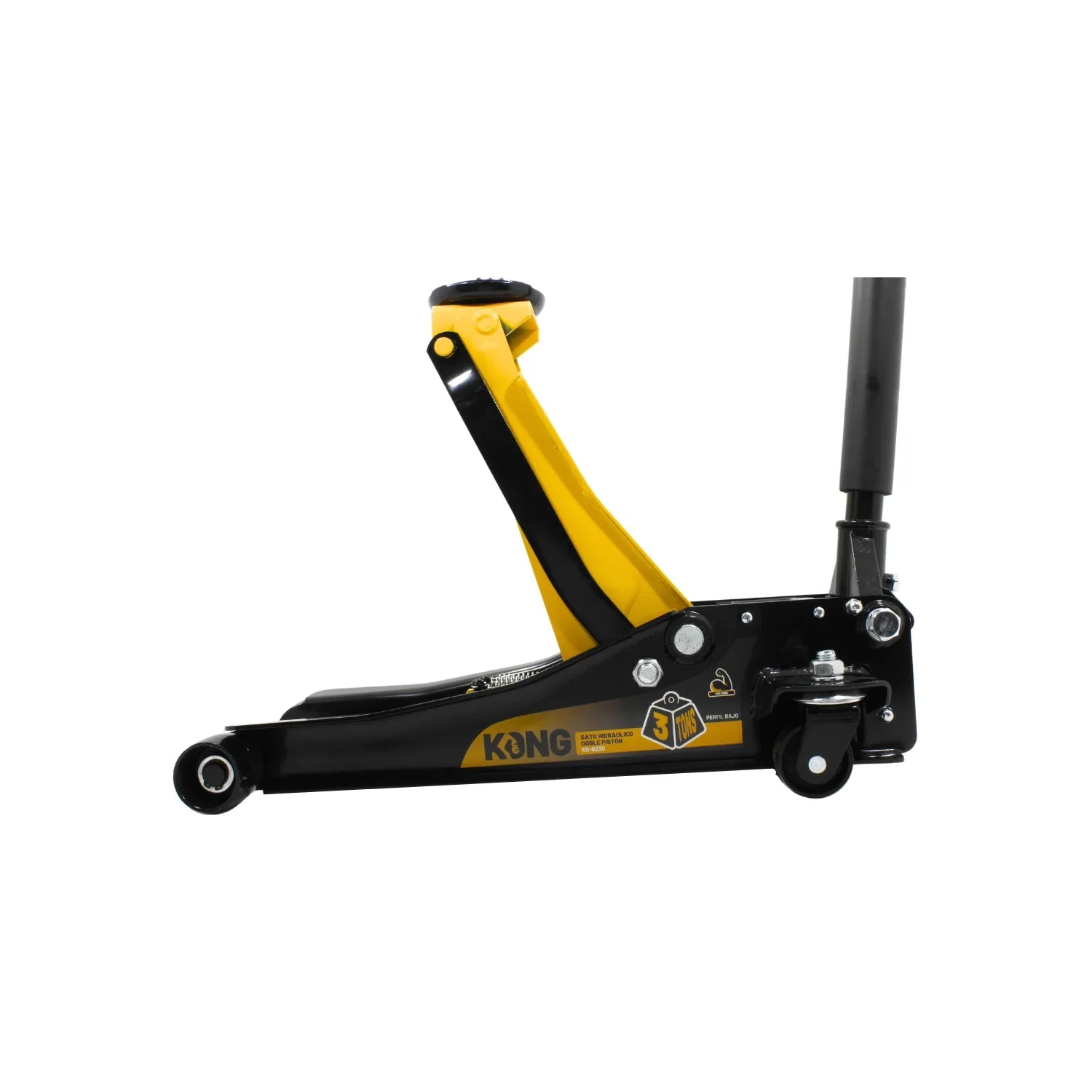 Gato de patín 3 toneladas modelo KO-G230 marca Kong diseñado para elevar automóviles camionetas y SUVs con sistema hidráulico de doble pistón perfil bajo estructura robusta y palanca de largo alcance para mayor eficiencia en talleres mecánicos