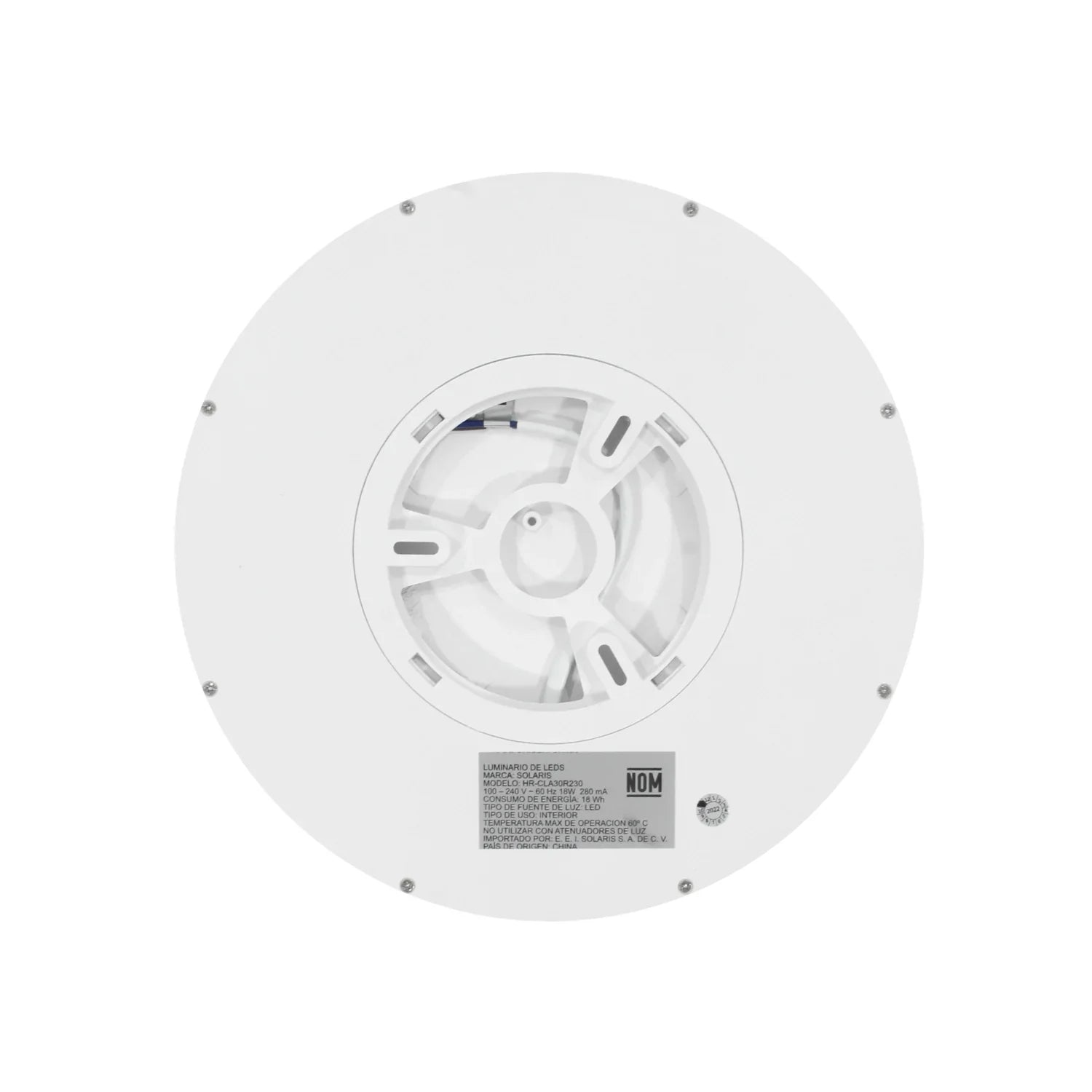 La lámpara Solaris TOM3T-18 WBC de 18 W tipo panel redondo para sobreponer ofrece 3tonos de luz seleccionables (cálida, neutra y fría) mediante interruptor. Su diseño plano y estructura blanca la hacen ideal para interiores modernos que requieren versatilidad lumínica.