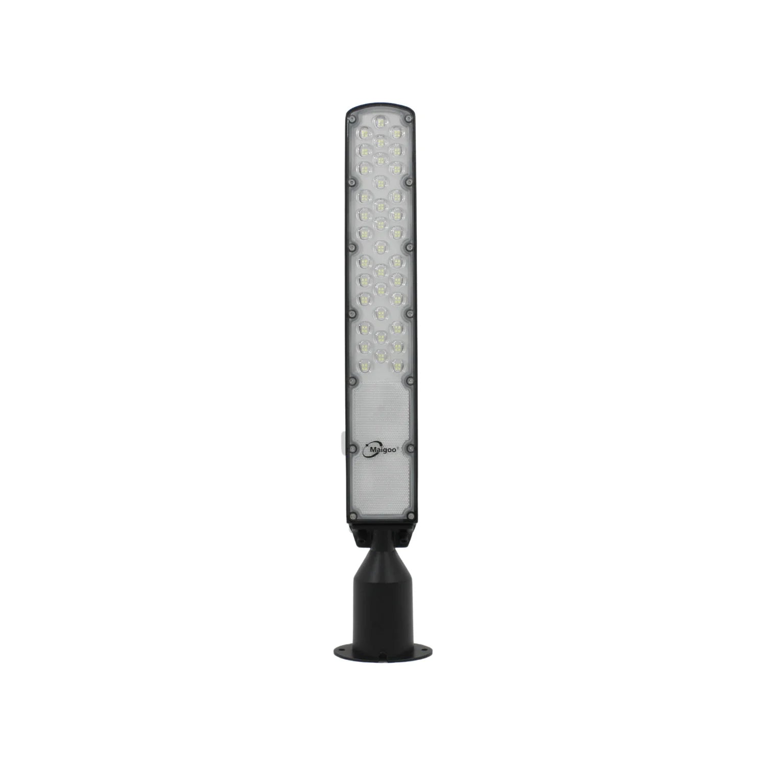 Lámpara urbana 100 W LED Maigoo MG03218 con sensor diurno integrado, ideal para automatizar el encendido en exteriores como vialidades, jardines o estacionamientos, ofreciendo iluminación potente y eficiente durante la noche sin consumo innecesario.