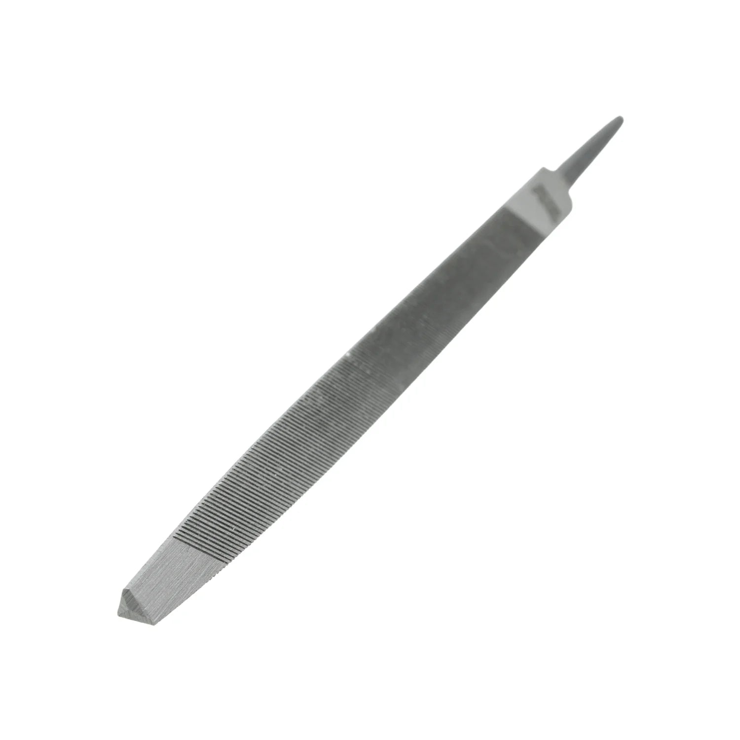 Lima triangular Santul modelo 8661 tipo bastarda de 5", diseñada para afilar sierras, machetes y herramientas agrícolas. Fabricada en acero templado con picado bastardo para desbaste rápido. Su forma triangular permite trabajar ángulos internos y bordes con precisión.