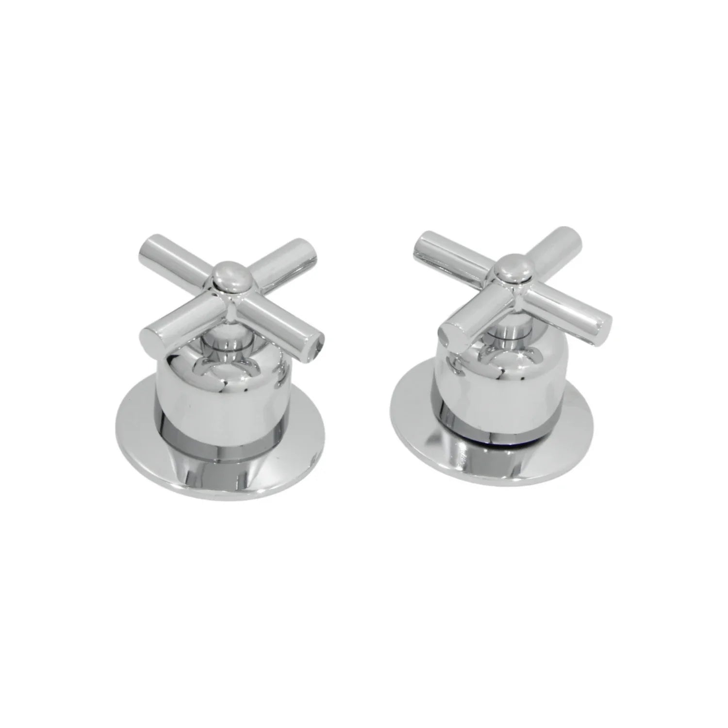 Juego de manerales Metalflu 14607 para regadera, fabricados en latón con triple capa de cromo. Diseño tipo estrella con espiga estriada. Incluyen chapetones metálicos. Compatibles con válvulas estándar de ½" con rosca. Alta resistencia a la corrosión y al uso continuo. Ideal para baños residenciales y comerciales.