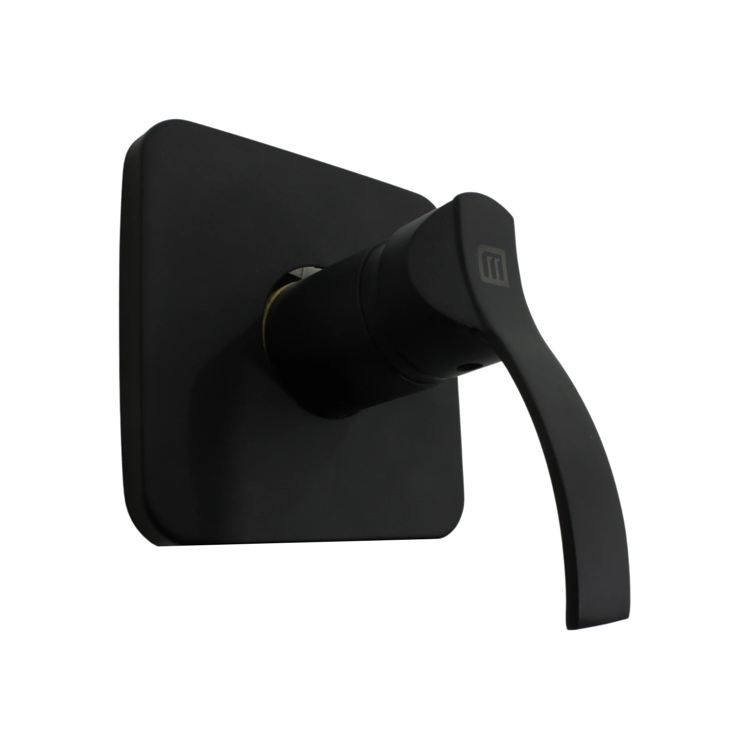 Monomando para regadera o tina Metalflu 04028, acabado negro mate. Fabricado en latón con cartucho cerámico de alta duración. Diseño Malta minimalista sin desviador. Ideal para baños modernos con estética negra. Compatible con sistemas de empotrar estándar.
