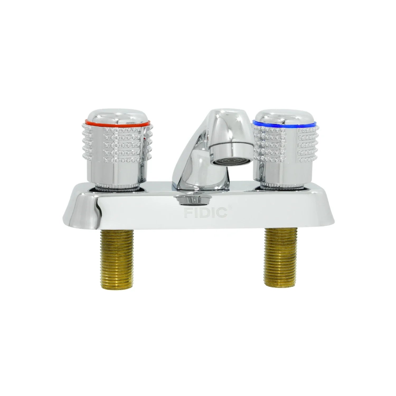 Mezcladora Fidic F42005 para lavabo de 4", fabricada en bronce con cuello y cubierta metálica. Acabado cromo, sistema de doble maneral metálico de vuelta completa y aireador ajustable. Diseñada para baños residenciales que requieren estética moderna, control preciso y alta durabilidad.