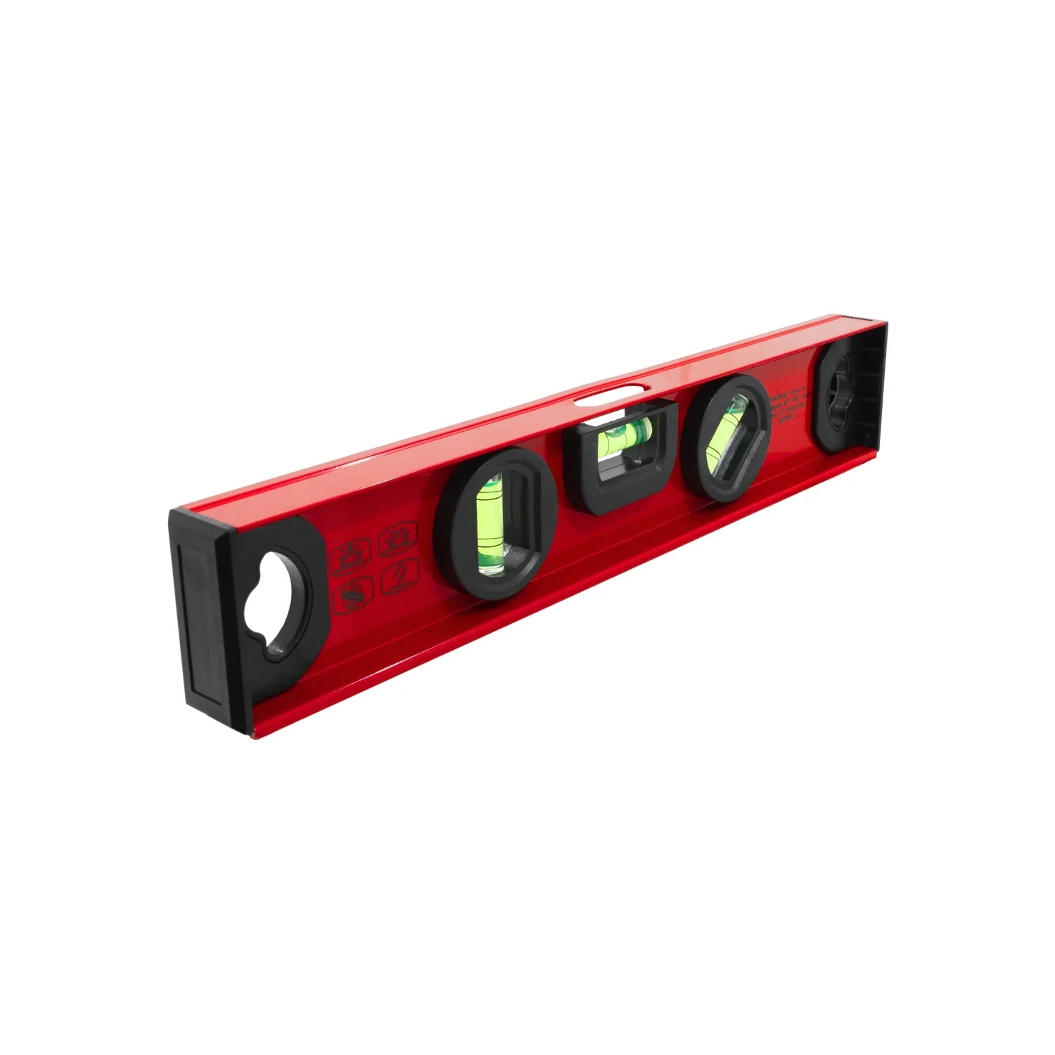 Nivel magnético Byp NIVPM12 de 12" en aluminio, con tres gotas (45°, 90°, 180°) y banda magnética lateral. Ideal para trabajos de precisión en carpintería, instalación y obra.