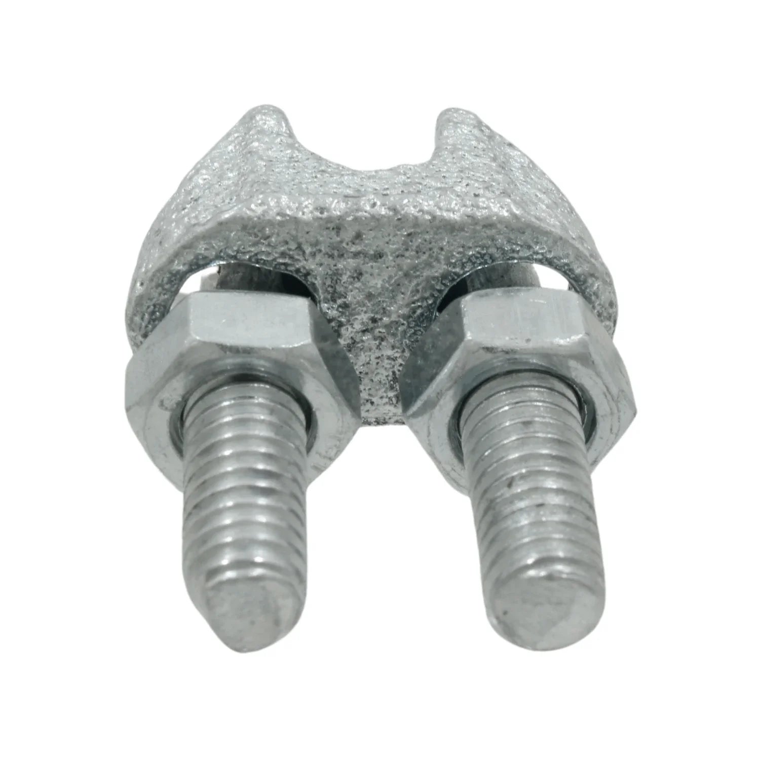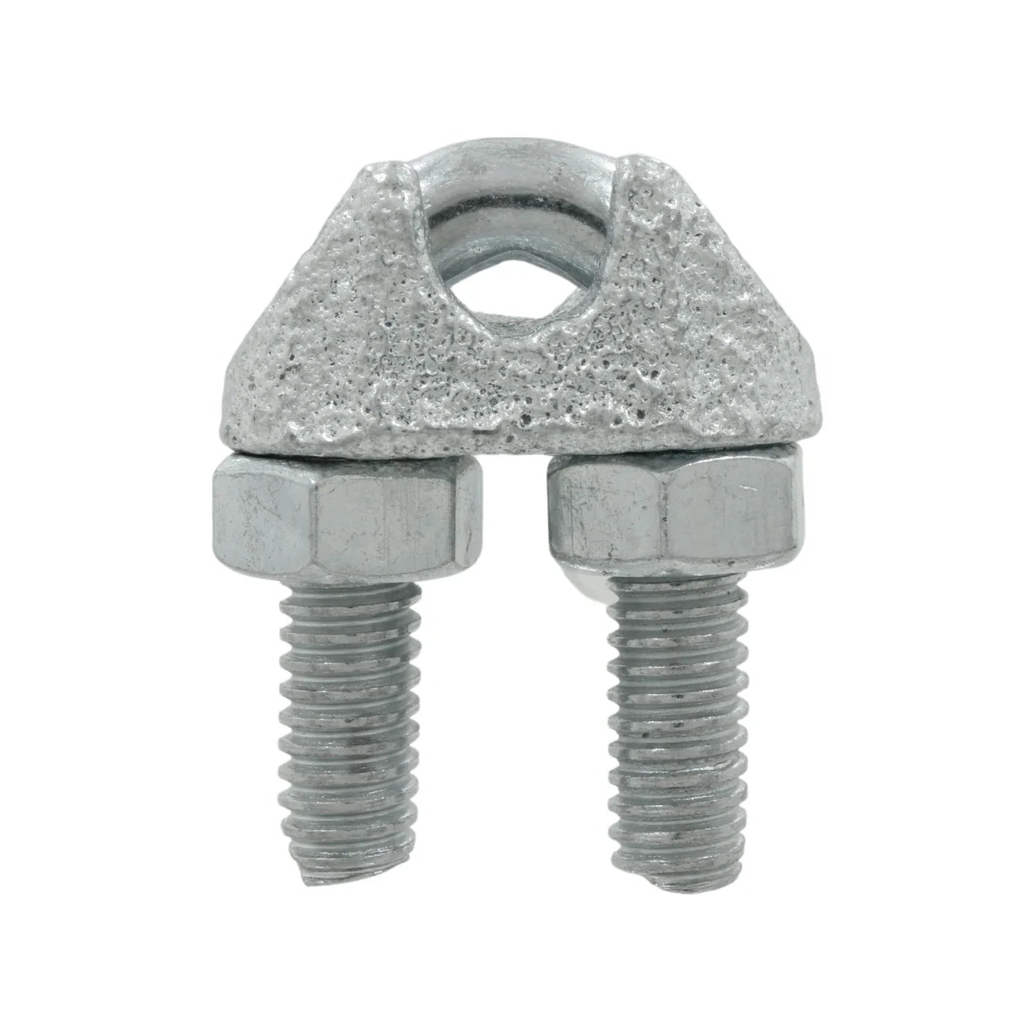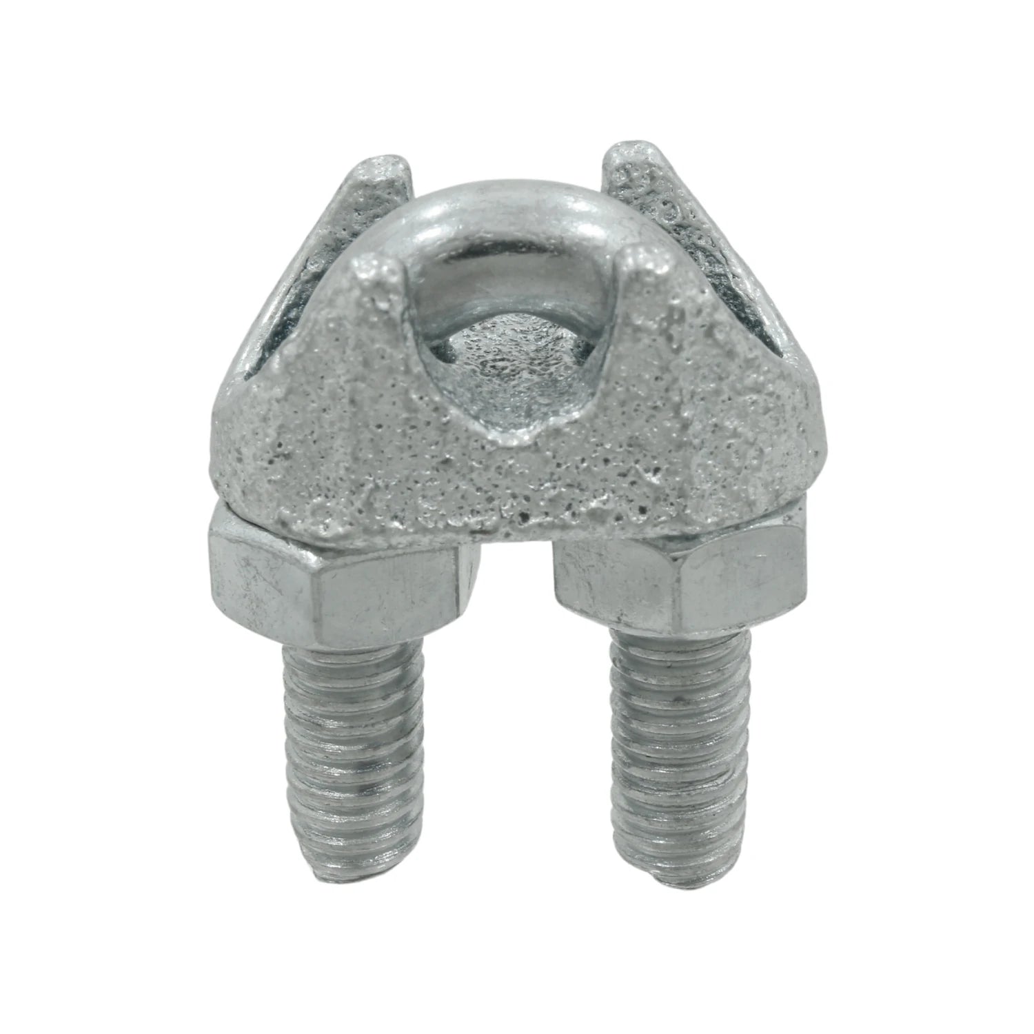 Nudo tipo perro Santul 7412 para cable de acero de 1/4", cuerpo de hierro nodular galvanizado. Ideal para fijación segura en tensores, eslingas y amarres estructurales. Uso ferretero y mecánico.