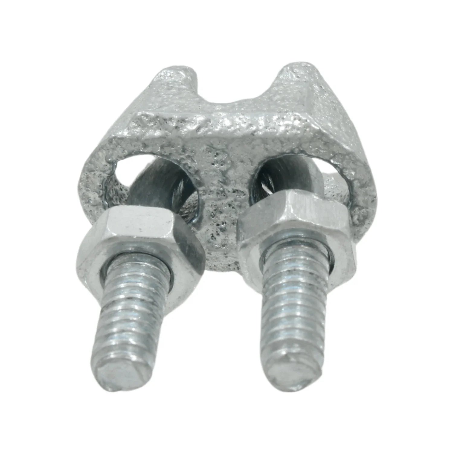 Nudo tipo perro Santul 7410 para cable de acero de 1/8", cuerpo de hierro nodular galvanizado. Ideal para amarres ligeros, tensores y fijaciones ferreteras. Uso técnico en estructuras menores.