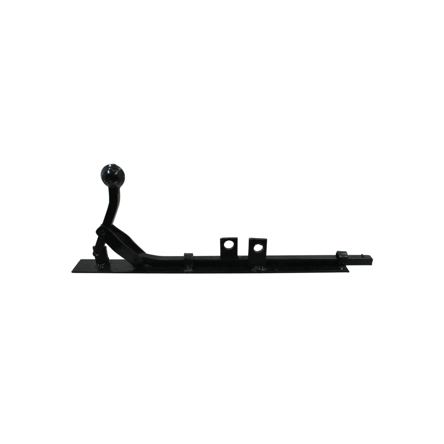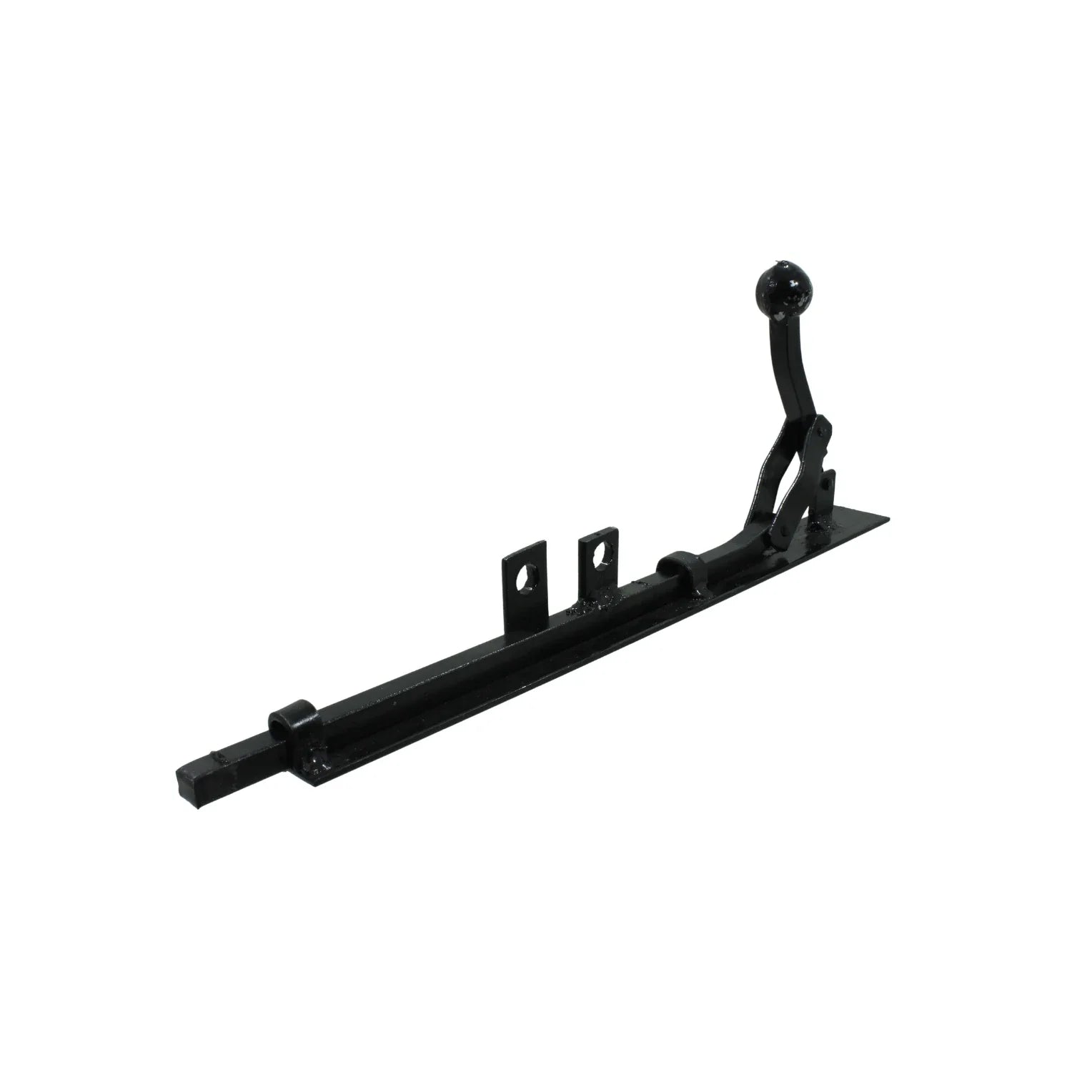 Pasador de piso estilo colonial con barra redonda de acero macizo y acabado negro mate, ideal para asegurar portones, zaguanes o puertas abatibles en instalaciones residenciales o comerciales que requieren estética tradicional y cierre robusto