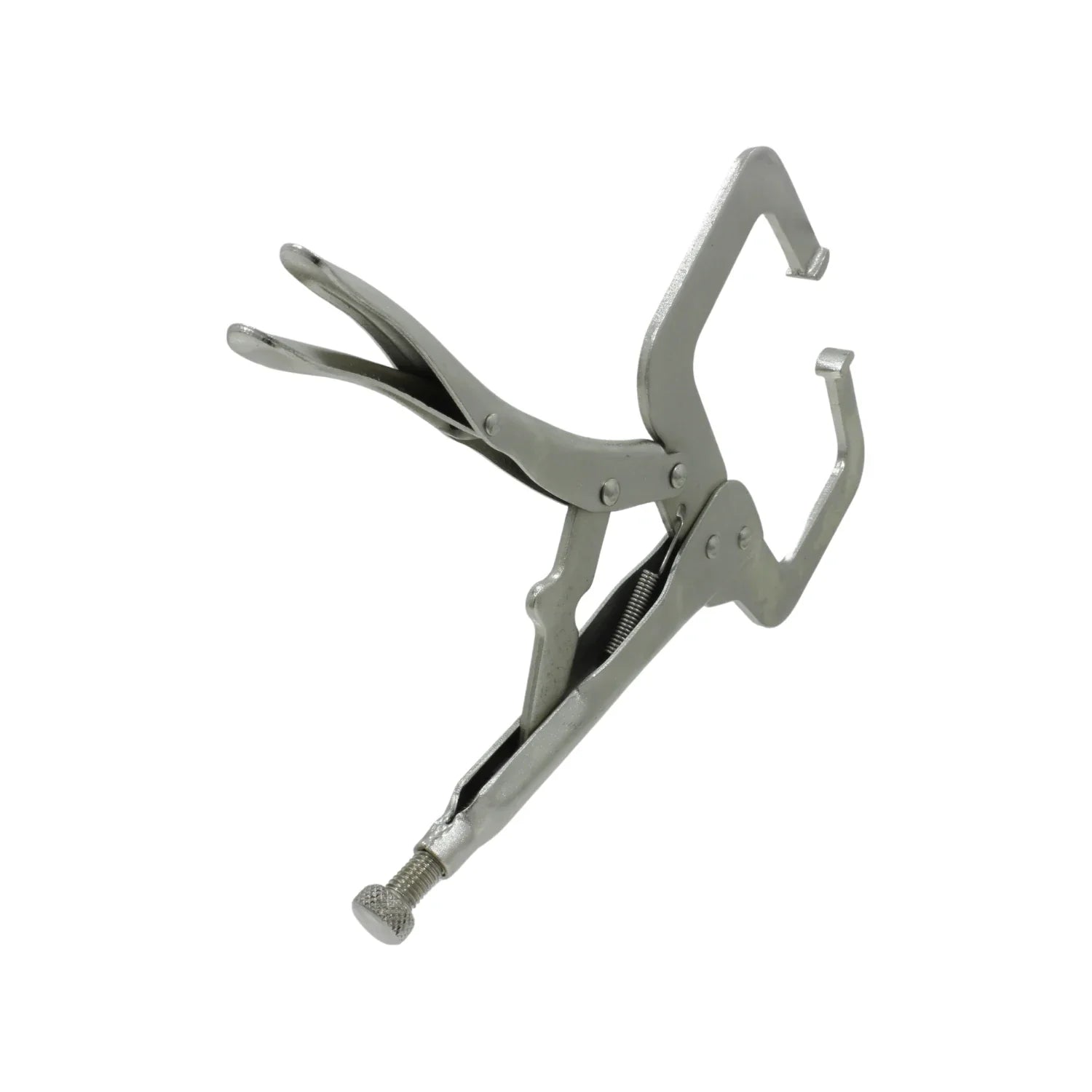 Pinza de presión Adir 15441 tipo "C" de 4 pulgadas con mordaza fija, ideal para sujetar piezas durante procesos de soldadura, carpintería o ensamblado. Su diseño robusto de 11" con liberación de gatillo clásica ofrece máxima fuerza de bloqueo, mientras que el tornillo de ajuste permite controlar la presión con precisión. Fabricada en acero tratado térmicamente para mayor durabilidad.