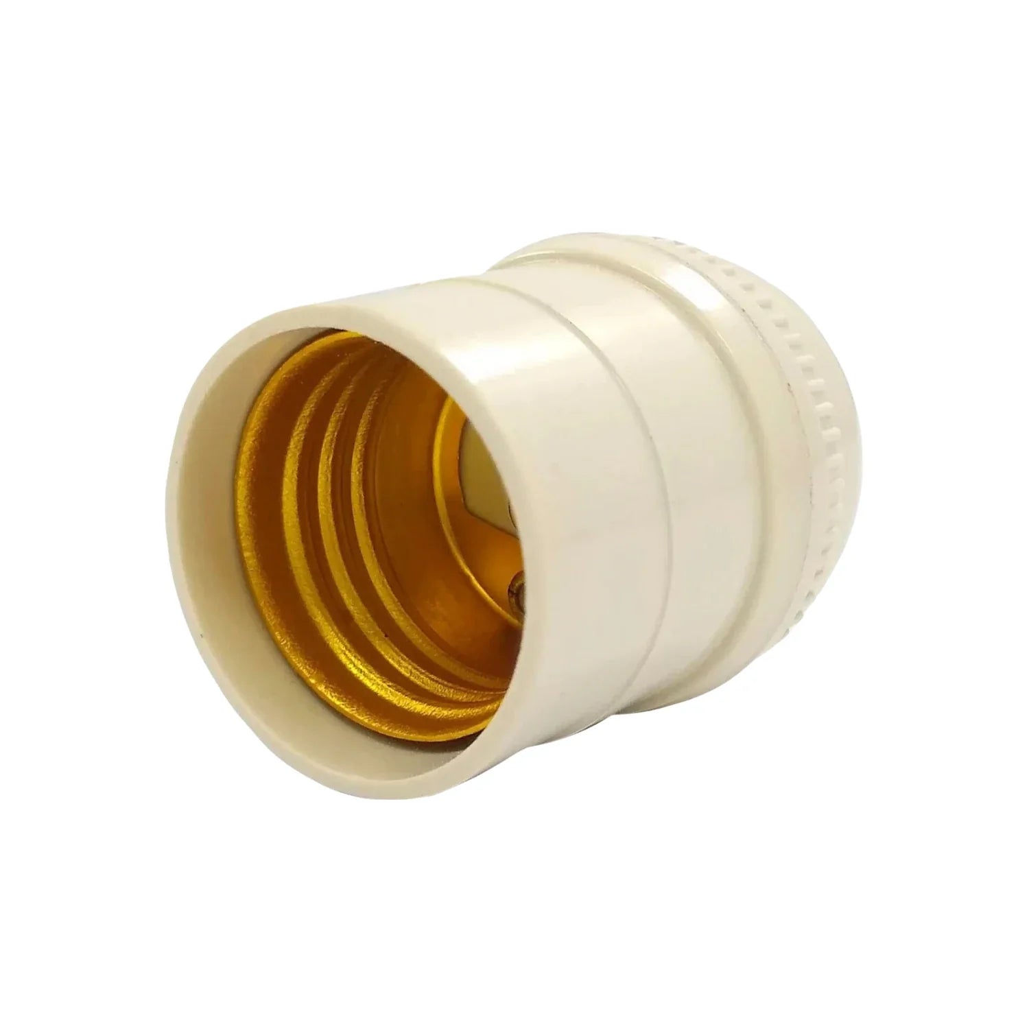 El socket sencillo de baquelita marfil sin rosca León LA008M está diseñado para focos con rosca estándar E26/E27, brindando una conexión segura y resistente. Fabricado en baquelita termoestable, ofrece alta resistencia al calor y un excelente aislamiento eléctrico. Su diseño sin rosca permite una instalación rápida y sencilla, ideal para aplicaciones domésticas, comerciales o de taller.