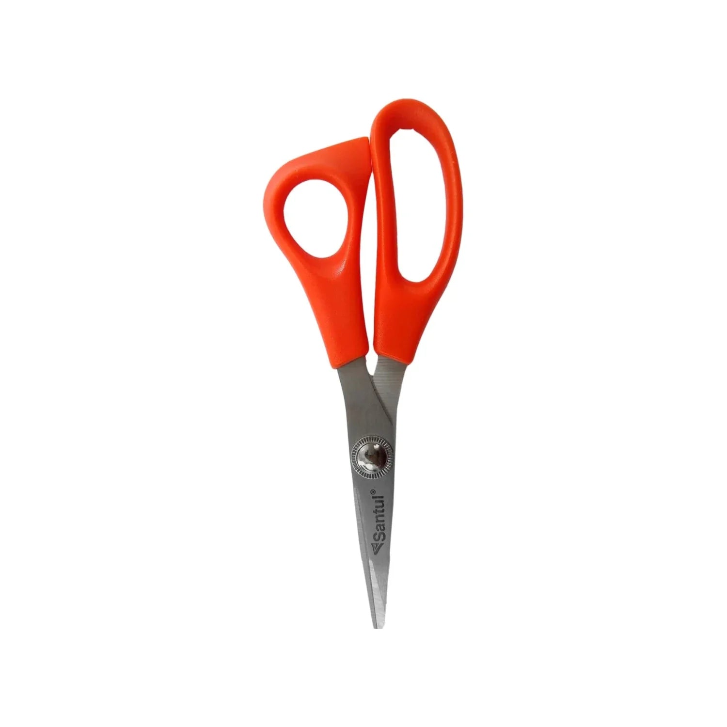 La tijera para casa y oficina Santul 8767 de 6″ es una herramienta práctica y duradera diseñada para cortes diarios. Su hoja de acero inoxidable proporciona precisión y resistencia, mientras que su mango de plástico ergonómico ofrece confort y buen control.
